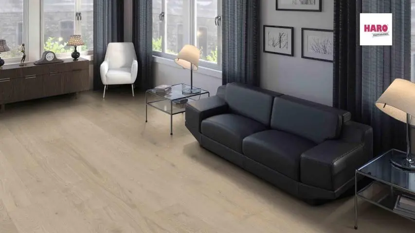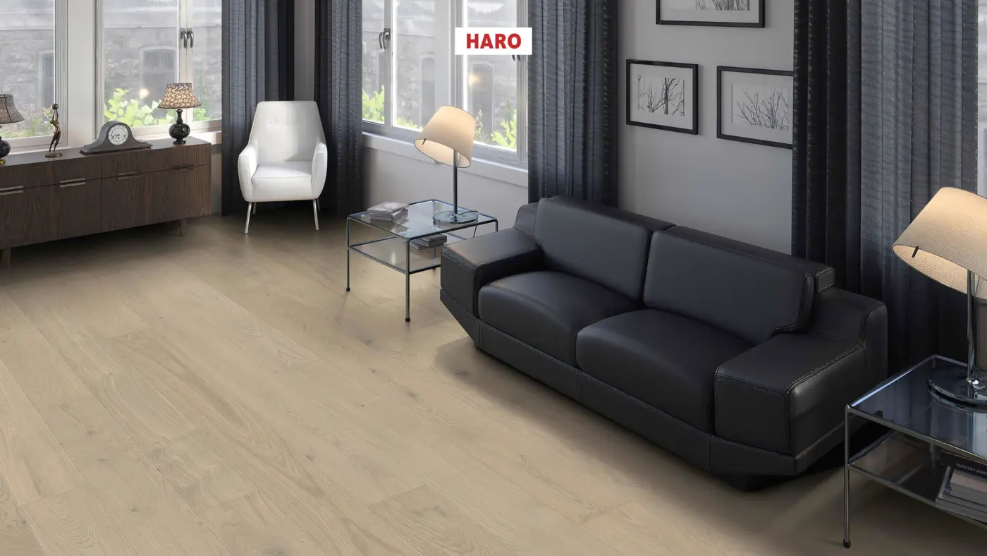 Serie 4000 Landhausdiele Maxim - Eiche sandgrau Markant strukturiert 4V nD 2-Schicht Parkett